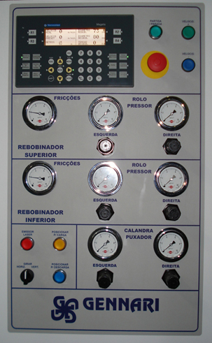 Máquina para corte e rebobinamento de filmes e papéis com espessura até 0,9 mm, para bobinas técnicas. A utilização de Drives Vetoriais e motores AC independentes garante estabilidade no controle de velocidade e precisão nos controles de tensão de Desbobinamento e Rebobinamento. A automação com PLC e IHM proporciona flexibilidade nas aplicações, facilidade de operação e de ajustes, garantindo padronização dos trabalhos. A retirada das bobinas é facilitada pela abertura dos braços de apoio dos eixos diferenciais.